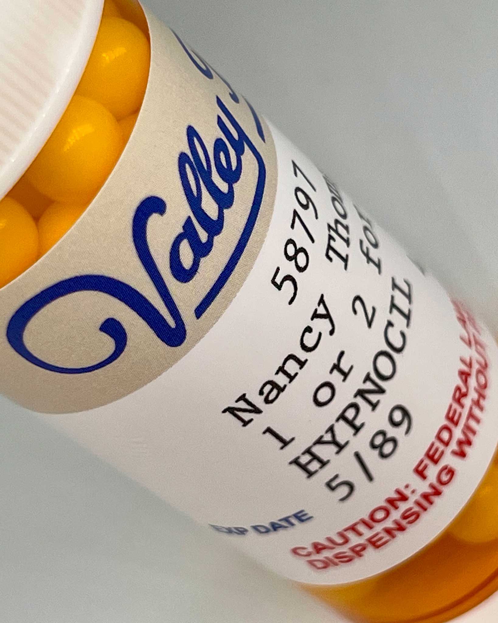 ⢠Replica prop-style prescription bottle and label