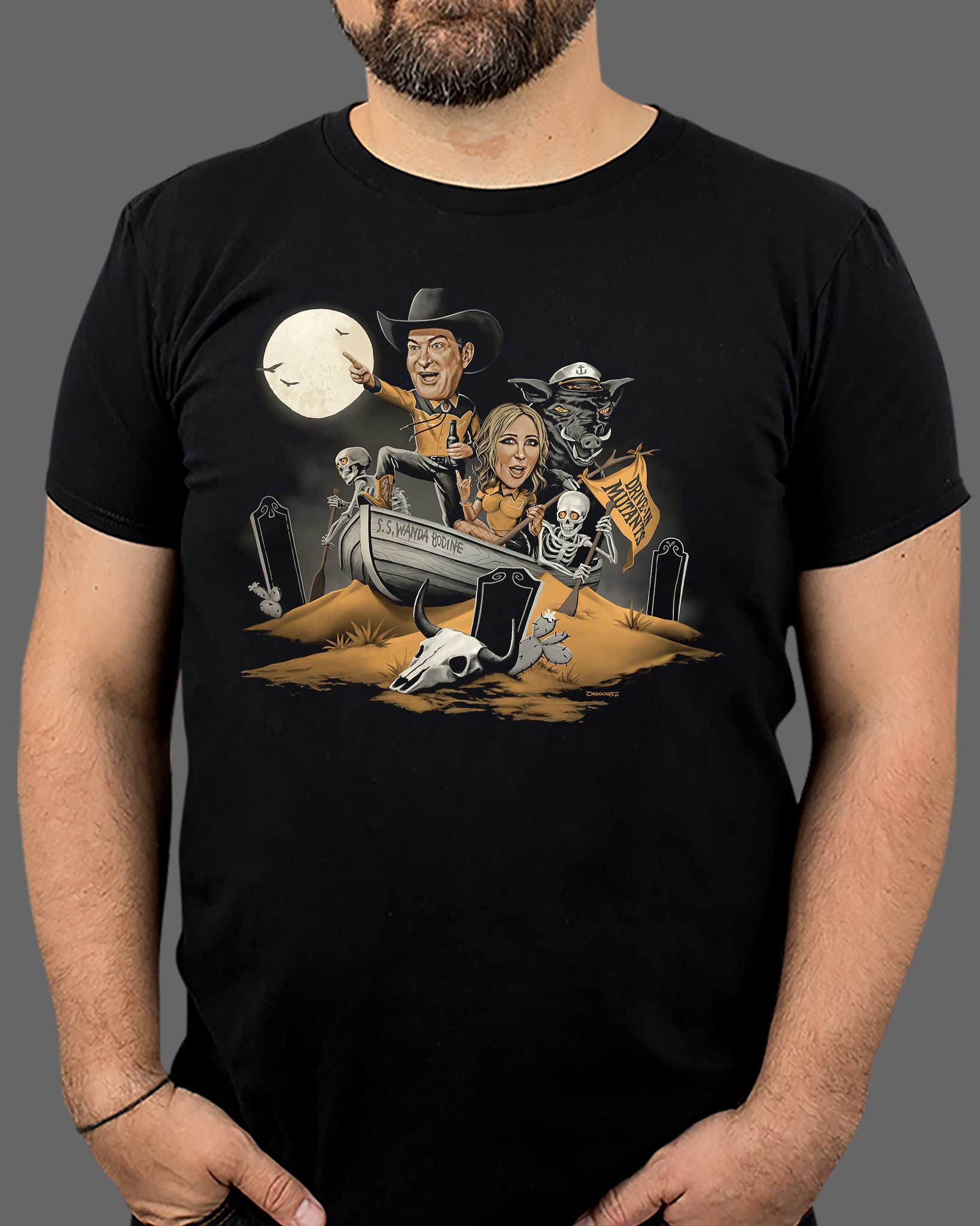 - Sizes Small to 2X-Large are Printed on a black, super soft 4.3oz 100% pre-shrunk ringspun cotton shirt
